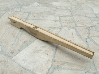 Side view of the body - still a lump of wood, but you can see how the lever goes.